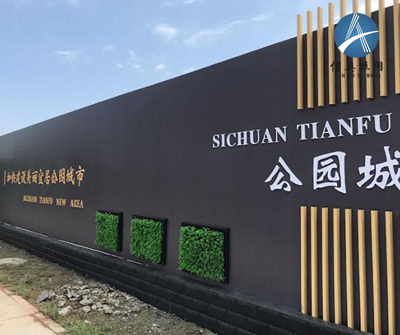 2.統一在硬質圍擋上加掛噴繪,并設置仿真綠化塊、金屬格柵裝飾、公益宣傳欄、PVC立體字。
